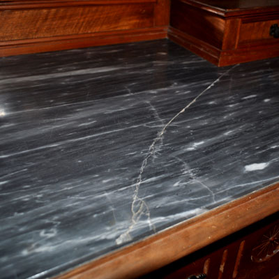 Caratteristiche: bellissima cassettiera stile Imperi del 1880 realizzata in abete massello e impiallacciato in radica di noce, impreziosito da un piano in marmo grigio venato. Ampia specchiera sovrastante con 2 cassettini alla base e intagliata. Cornice superiore con cimasa centrale intagliata. Quattro ampi cassetti con chiusura a chiave, di cui il primo finemente intagliato sul frontale. Cassetti incastrati a coda di rondine, piedi a cipolla.